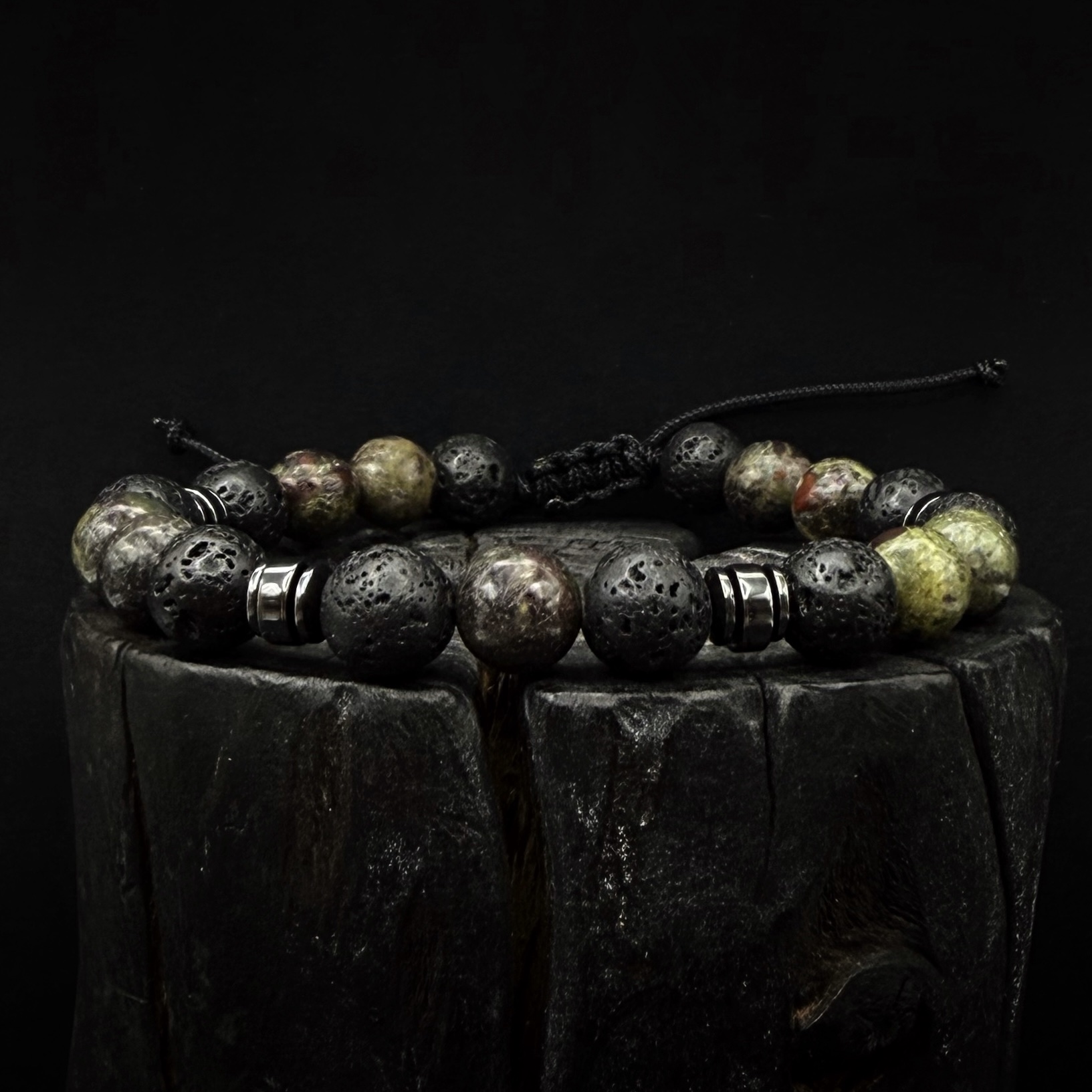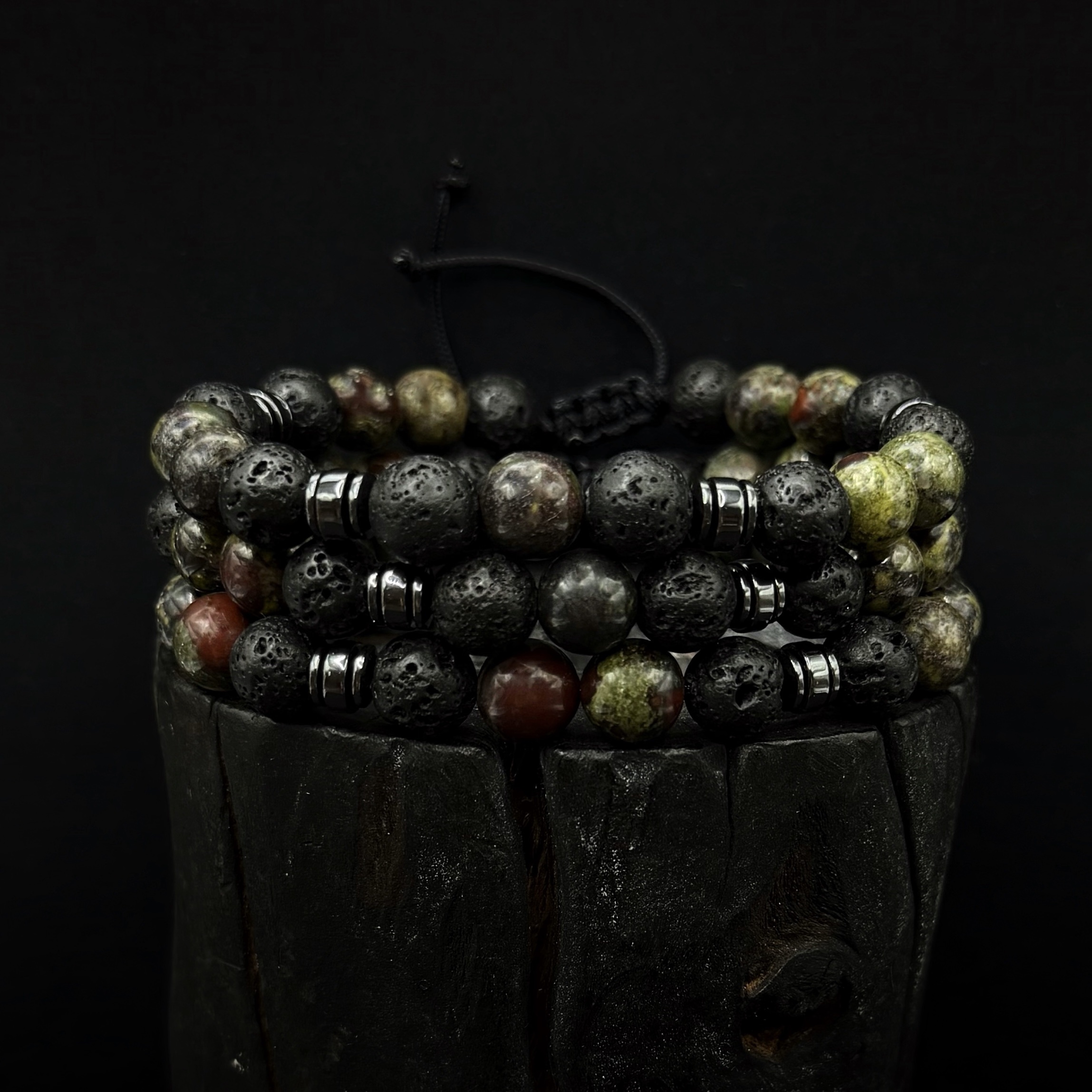 Ręcznie robiona bransoletka z Lawy wulkanicznej 8 mm , hematytu i Heliotropu.