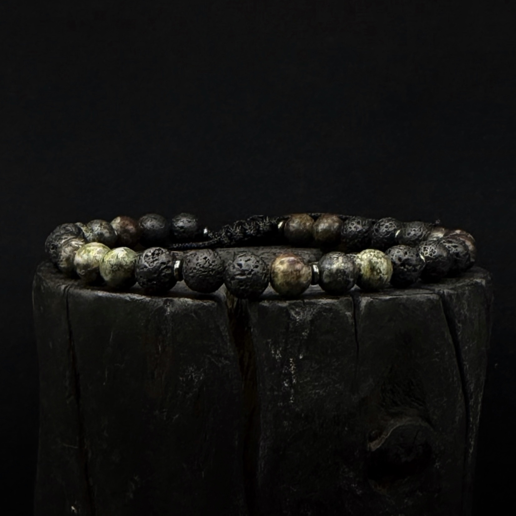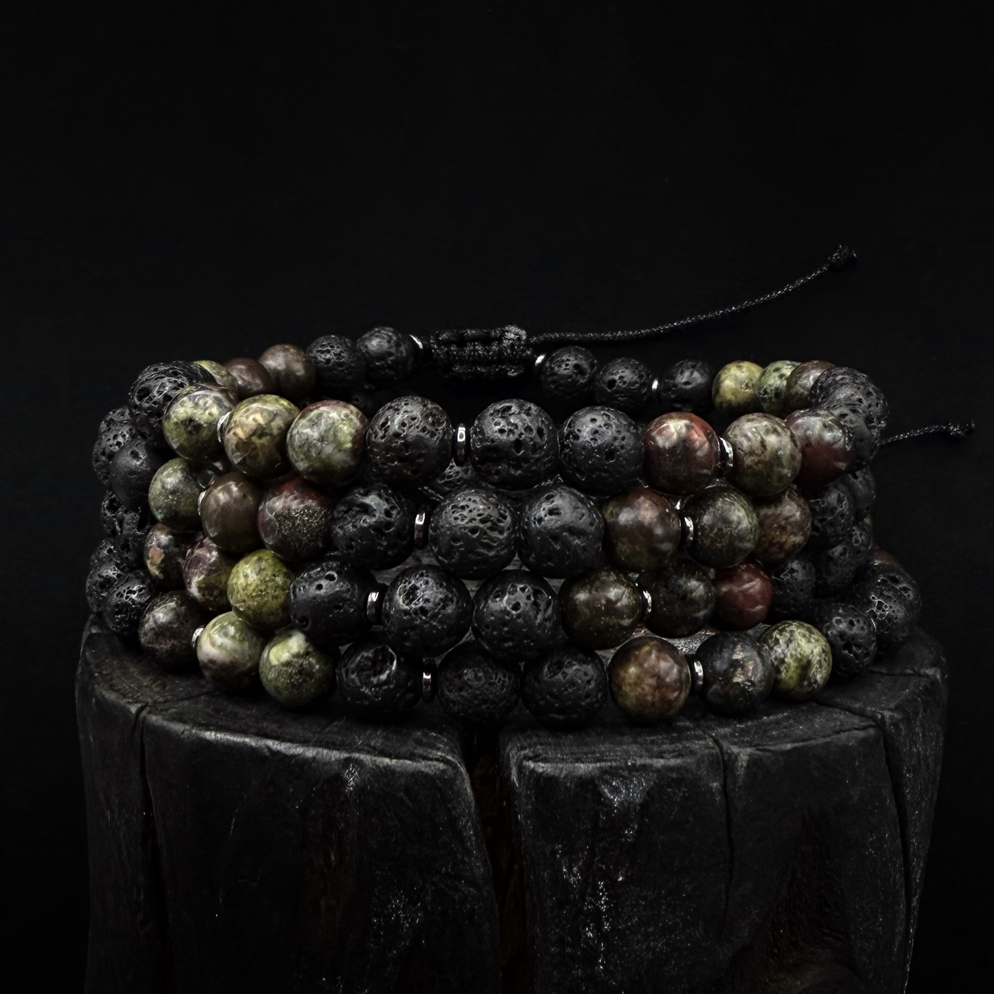 Ręcznie robiona bransoletka z Lawy wulkanicznej 6 mm , hematytu i Heliotropu .