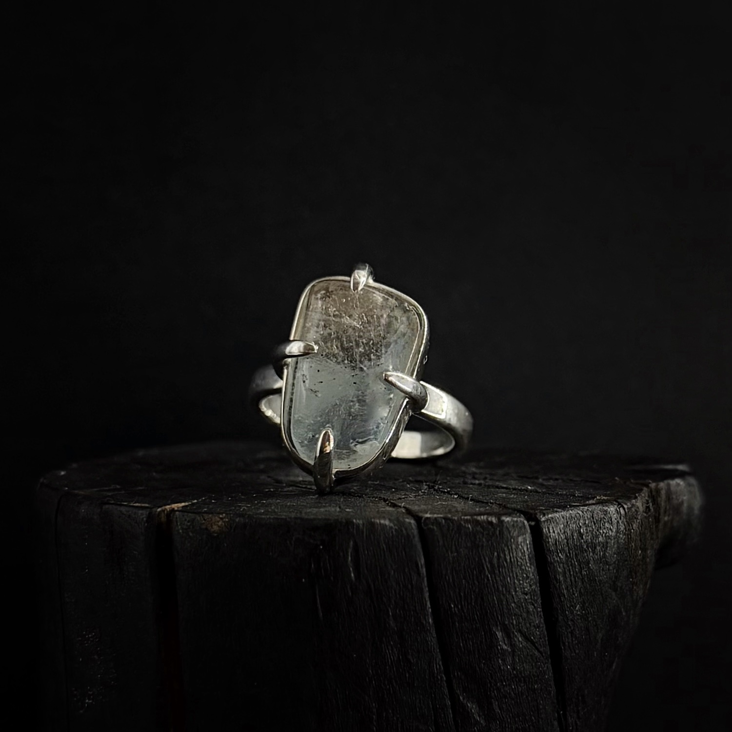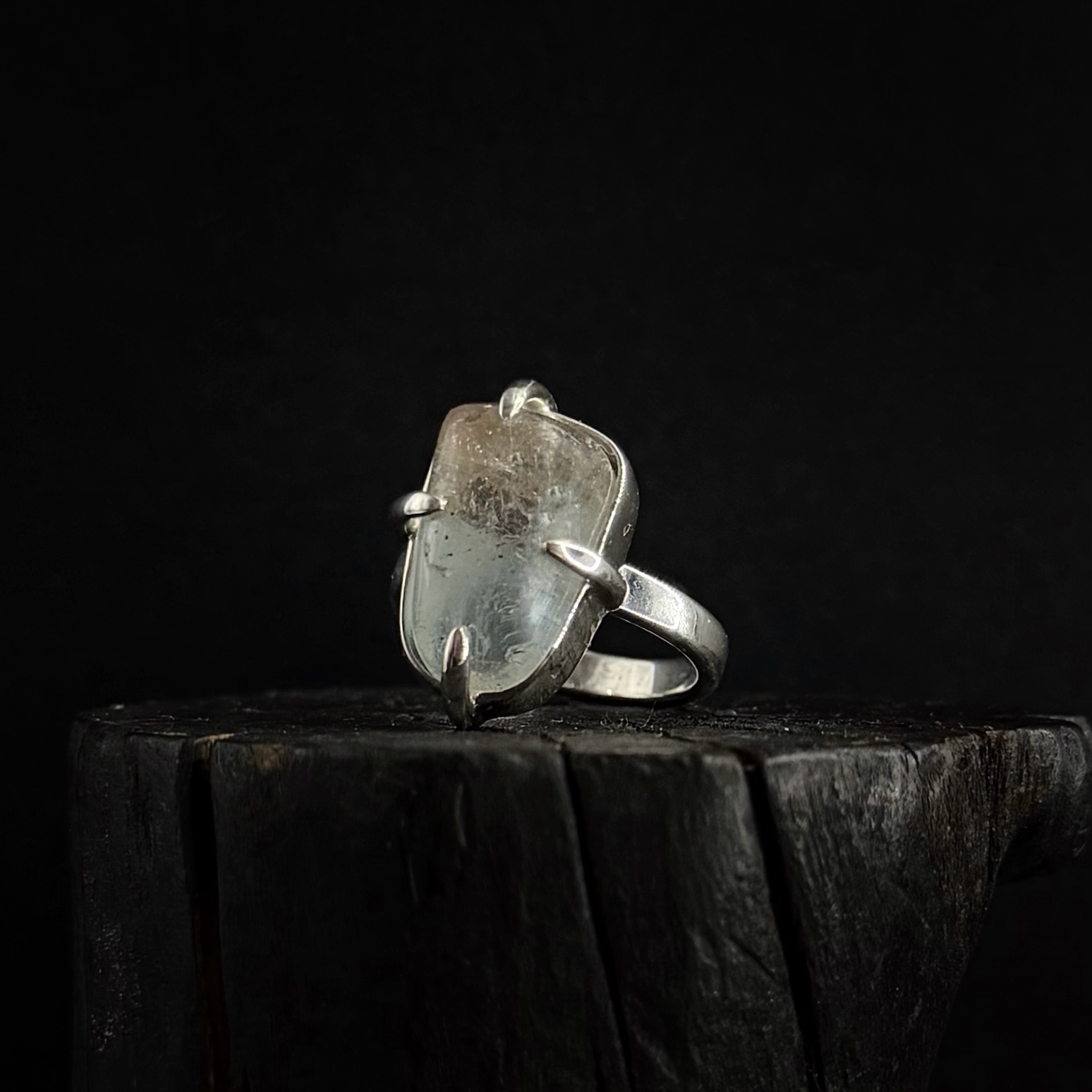 Srebrny ręcznie robiony pierścionek z Topazem.